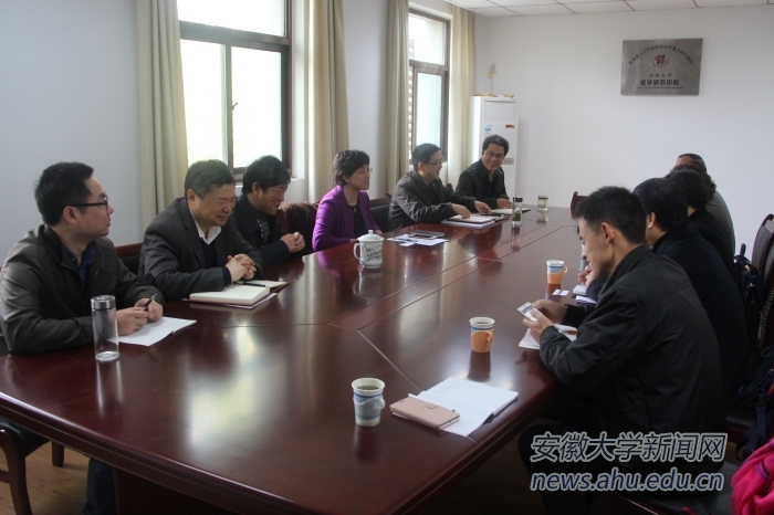 程雁雷向客人介绍了我校徽学研究中心的成立和发展情况、“十三五”期间的工作计划及研究发展方向。两校科研人员交流了徽学研究中心徽州文书的来源途径、收藏数量,徽州文书的覆盖范围、种类、历史年代、地域,徽州文书的研究和出版情况,徽学中心的建设及其他相关情况。