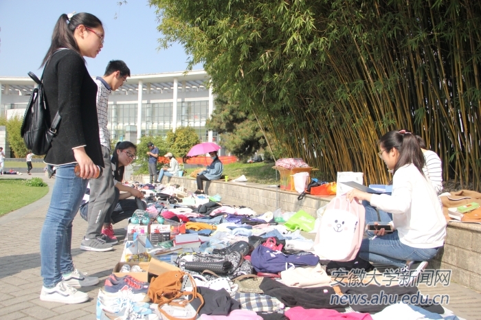 本网讯(新闻中心学生记者 王晓冉 柏煦涵)4月15日,星期六。除了一天比一天起早的太阳,整个安大校园还沉浸在休息日的静寂中。而有一部分同学正在悄悄地走出寝室,连早饭都没有来得及去吃,便匆匆忙忙赶去鸣磬广场,去参加每学期一次的乐淘市场。