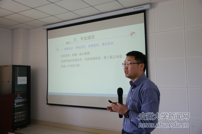 会议由数学科学学院主办,副校长薛照明出席研讨会。山东大学齐鲁证券金融研究院副院长林路教授、安徽工程大学数理学院院长费为银教授、滁州学院数学与金融学院院长翟明清教授、皖西学院金融与数学学院副院长周本达教授分别围绕本校金融数学专业在专业人才培养、师资队伍建设、实验课程体系建设、实践基地建设等主题作学术报告。