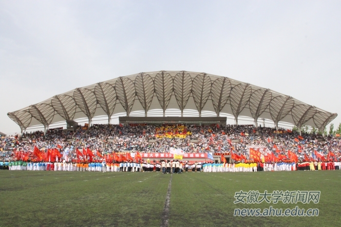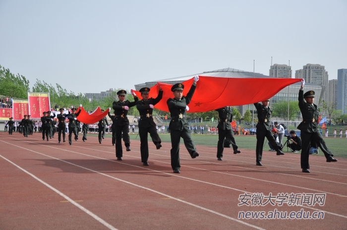 本网讯(新闻中心学生记者 刘梓桐 徐可 苏诗洋\文 吴顺 杨杰 张艺凡 陈侨 潘婧卉\图)4月19日上午,安徽大学第55届田径运动会在磬苑校区体育场隆重开幕。本届田径运动会各院系共计1159名师生运动员参加比赛,同场竞技,用汗水抒写自强不息、拼搏向上的历史,在“更高、更快、更强”的奥林匹克精神鼓舞下,身体力行,竞争拼搏,充分诠释体育精神内涵。