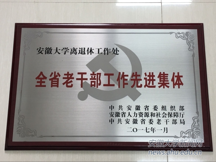 本网讯(新闻中心 李贤)4月20日上午,全省老干部工作“双先”表彰大会在合肥召开。我校离退休工作处作为全省老干部工作先进集体受到表彰。