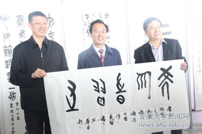 校党委副书记、常务副校长王群京,全国政协委员、安徽省文史馆馆长、安徽大学党委原书记、原校长黄德宽,安徽大学文学院教授、汉语言文字研究所所长徐在国等出席开幕式。开幕式由校党委副书记、纪委书记胡小松主持。王群京讲话,冯克坚致辞,宋华平宣布开幕。冯克坚为黄德宽颁发中国文字博物馆顾问聘书,为徐在国颁发中国文字博物馆学术委员会副主任委员聘书。