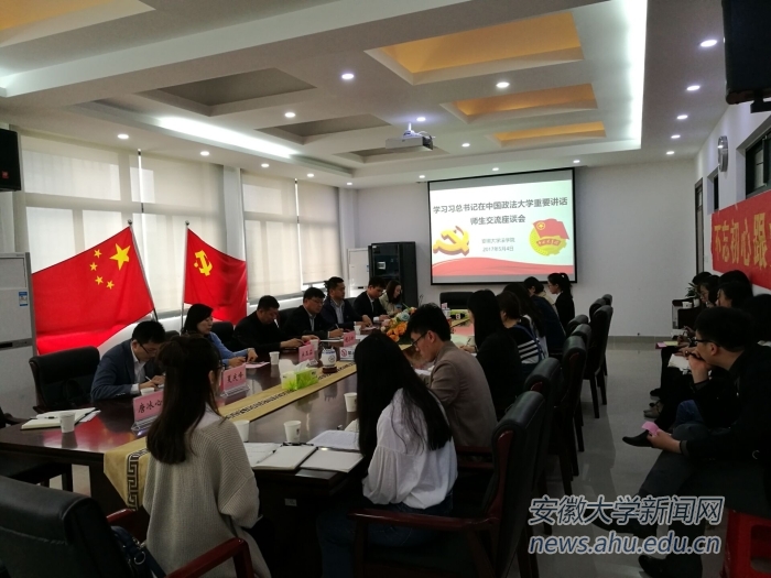 座谈会上,法学院院长郭志远勉励同学们,要不断加强学习和实践,在中国法治建设的进程中,立足中国、面向世界,坚持问题导向、推进理论创新和实践创新。青年教师代表贺琛和夏庆峰老师分享了他们学习心得,提出青年教师要在学习和教学过程中树立奉献教育、为社会主义培养合格法治人才的决心,立志在平凡的岗位上不断提升个人知识技能、创新理论研究、推进科研工作发展,扎根基层,为党的教育事业作出更大贡献。