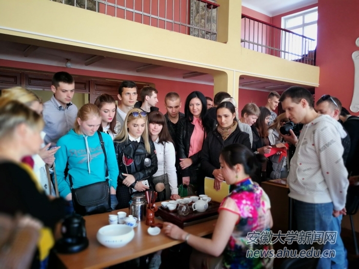 乌克兰师生兴致勃勃地观看中国茶艺展示