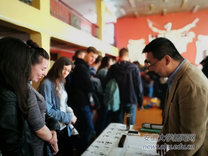 活动现场通过一组图片和视频向师生介绍了孔子学院的基本情况和办学成果、新汉语水平考试,以及前往中国留学的各种项目,吸引了现场学生的极大兴趣。在文艺汇演环节,孔子学院的老师和留学生代表表演了太极功夫扇、中国舞蹈、歌曲、横笛演奏等节目,展示中国文化的魅力。现场还设有传统特色大师班,现场师生有机会近距离接触了中国书法、剪纸、茶艺、中国结和太极功夫,并亲身体验这些中国传统艺术和技法,纷纷表示希望有机会深入了解中国文化。
