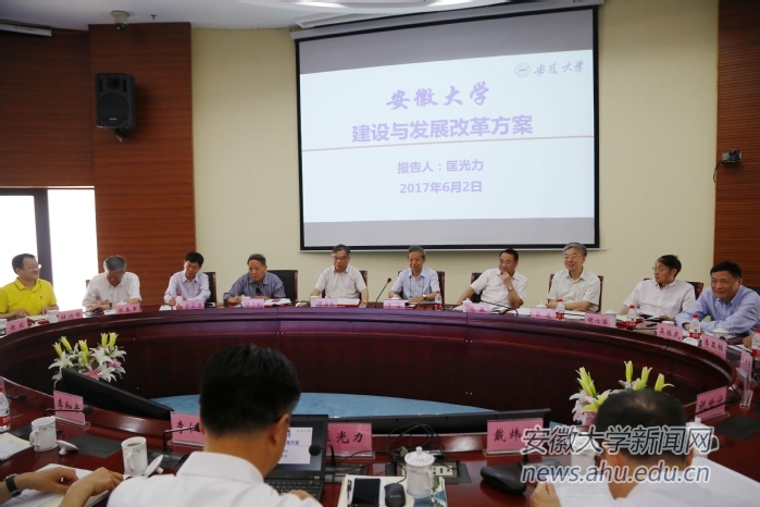 匡光力向各位委员汇报《安徽大学建设与发展改革方案》