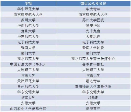 据悉,为促进高校新媒体发展,把握新媒体传播规律,中国青年报社、中国高校传媒联盟于今年6月初启动“校媒·全国高校新媒体评选”活动,经过近一个月的征集、人气投票、专家评审等环节,组委会从全国参选的近千家校园微信公众号中,评选出“原创内容奖”、“视觉设计奖”“运营创新奖”“人气奖”四类共80家校园微信公号(不含自媒体)。