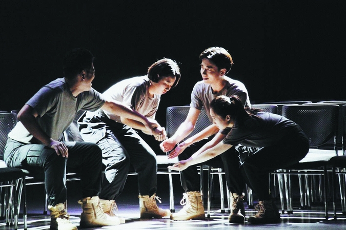 安徽大学戏剧系2017届本科毕业生杜浦昊天的毕业作品——话剧《奥赛罗》,是一部融合了现代元素进行全新创作和演绎的作品。剧中只有六位演员,几排椅子,清一色灰色的短袖上衣。演员并没有按照传统的表演方式进行装扮表演,也没有真实的布景,刀子、手帕等道具都借椅子来象征。演员在空间中完成对话与动作的表演,通过假代、类比、移情等方式带领观众进入戏剧情境。今年6月20日至21日,该剧还走出校园,在合肥大剧院进行了两场公演。