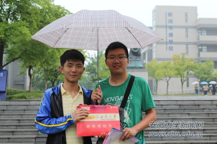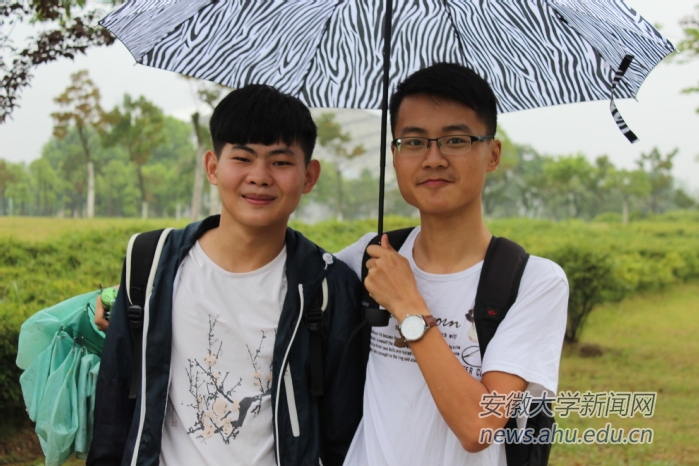 新闻传播学院李傲秋、周云琨说,很喜欢学校的氛围,学长学姐们迎新很热情,给了他们很多指导。而他们希望在这所充满绿色的校园里愉快生活、努力学习。