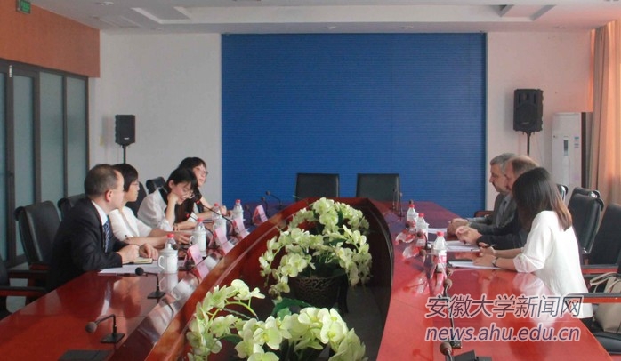 程雁雷介绍了学校近年来的建设与发展、学科建设、师资力量等方面情况,表达了我校在互派学者、选派留学生、举办国际学术会议等方面的合作交流意向。她说,学校高度重视国际合作与交流工作,目前已与世界上126所高校和科研机构建立了交流合作关系。学校同俄罗斯、乌克兰、阿塞拜疆等国的多所高校开展了科学研究、人才培养、师生交流等方面的合作。安徽大学希望在教育教学、人才培养、科学研究等方面建立并拓展与白俄罗斯高校的交流与合作,积极参与“一带一路”战略,加强与沿线国家的合作交流,提升学校国际化水平和国际影响力。