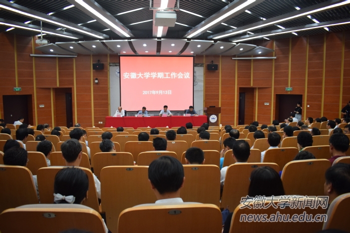 本网讯(新闻中心 柏煦涵 刘芬平)学校学期工作会议日前在文典阁学术报告厅召开。会议强调,全校上下要以高度的政治责任感,对标重点任务,聚焦重点发力,强化落实到位,凝心聚力推进学校“双一流”建设,更好地服务五大发展美好安徽建设和全面建成小康社会,以优异成绩迎接党的十九大胜利召开!