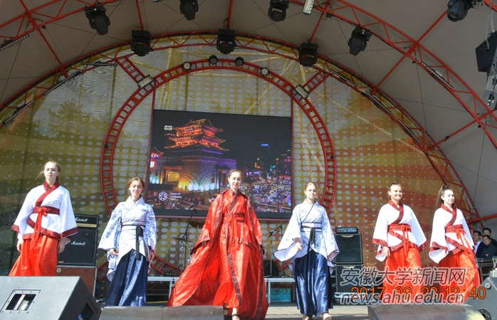 文艺汇演的节目内容丰富多彩,有“站如松,坐如钟,走路一阵风”、刚柔相济的太极功夫扇表演,也有大气磅礴、潇洒豪气的横笛独奏《沧海一声笑》,还有悠远绵长、婉转动听的葫芦丝合奏《婚誓》。还有展现青春活力的中国流行歌曲《冬天里的一把火》、《爱要坦荡荡》和《日不落》,婀娜多姿的傣族舞《月光下的凤尾竹》、志愿者合作表演的诗歌朗诵《以梦为马》、孔子学院学员表演的精彩汉服秀、孔子学院教师志愿者表演的旗袍秀等博得阵阵热烈掌声。丁仕文还与教师李喆一同朗诵诗人普希金的经典诗歌,掀起文艺汇演的高潮。