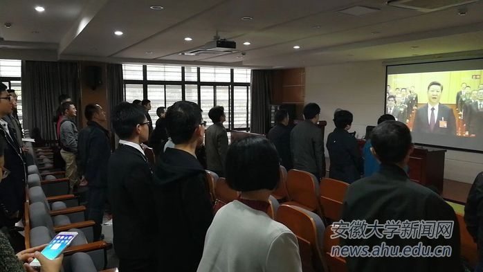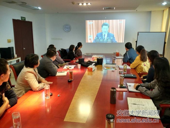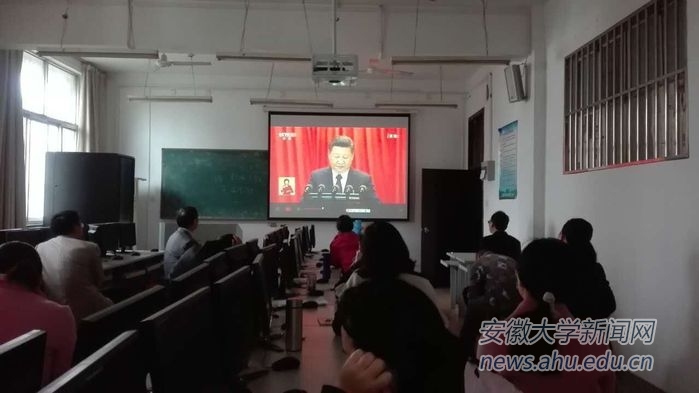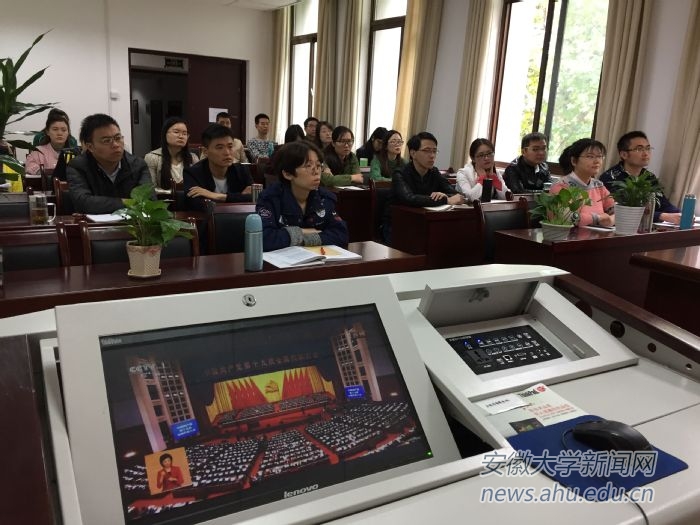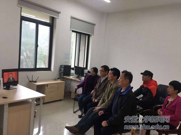 校党委书记李仁群,校长匡光力,党委副书记、常务副校长王群京,党委副书记、纪委书记胡小松,副校长虞宝桃,副校长俞本立,副校长薛照明,副校长程雁雷与校直机关各部门同志一起在磬苑校区办公楼B204会议室收看大会现场直播。3小时30分钟的开幕式直播节目,大家聚精会神听报告、全神贯注作笔记,仿佛置身于大会现场聆听报告,不时激动,不时自豪,不时骄傲,表现出了对党的无限热爱和对党的第十九次代表大会的热切期待。