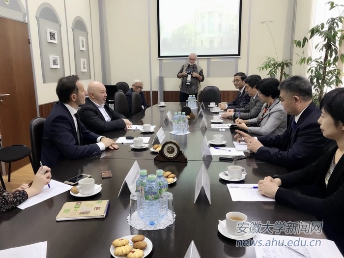在莫斯科国立师范大学,程雁雷与该校分管中国事务的副校长达查恩卡·康斯坦丁和国际部门代表进行了会晤,介绍了各自学校的情况和办学特点,希望尽快建立校际合作,在学生长短期交流、专家教师互派、联合科学研究等方面开展合作。两校人员就《安徽大学与莫斯科国立师范大学关于开展教育合作》的协议内容达成一致。