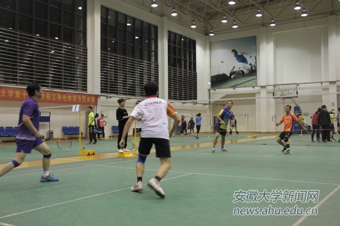 本网讯(新闻中心通讯员 钟兵)金秋季节,美丽的龙河校区秋色浸染。田家炳体育馆里又一次响起了嘹亮的呐喊和加油声、清脆的击球和脚步声。白色的羽球在飞舞,酣畅的汗水在挥洒,一年一度的安徽大学教职工羽毛球混合团体赛正在这里举行。
