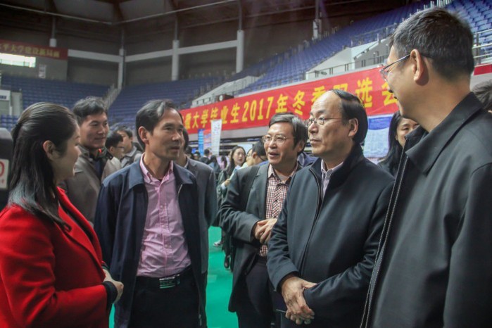 省教育厅副巡视员左其琨,校党委副书记、纪委书记胡小松在双选会现场检查指导工作