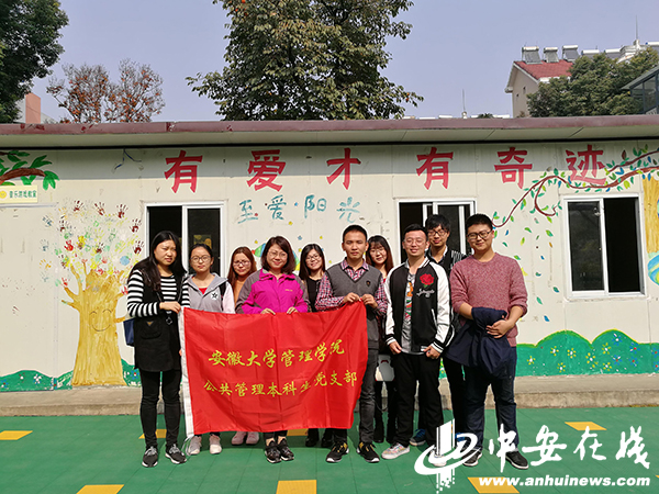 中安在线讯 在全省上下深入学习贯彻党的十九大精神之际,11月8日上午,适逢党员活动日,安徽大学管理学院公共管理本科生党支部开展志愿服务活动,前往合肥市蜀山区至爱阳光儿童康复中心看望、关爱自闭症儿童。