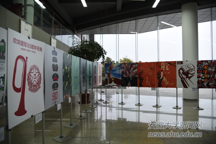 本次展览由我校马克思主义学院和艺术学院共同举办。艺术学院的同学们以“赤子初心”为主题,运用思政课学习成果积极进行文化艺术作品创作和设计,创作出一批反映时代特征的优秀作品。展出的44件优秀作品内容涉及军事、体育、民生等各方面,有的体现了艰苦卓绝的革命精神,也有的与当今“一带一路”战略相契合。