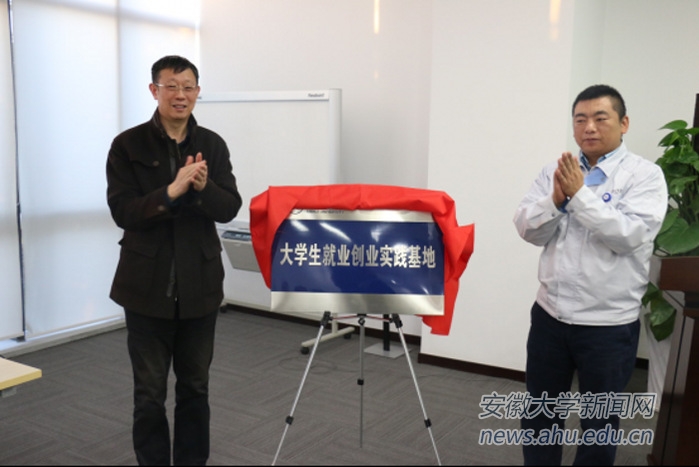 胡小松(左)等为我校与合肥京东方共建的大学生就业创业实践基地揭牌