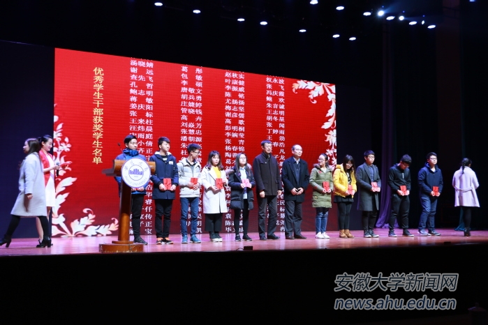 本网讯(新闻中心 张兢 张敏)12月12日下午,“与安大一起奔跑”安徽大学2017年优秀学生颁奖典礼暨先进事迹交流会在磬苑校区适之楼多功能厅举行。
