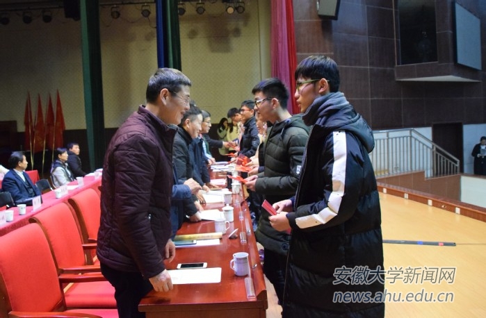 会上颁发了2017年度奖学金和助学金,宣读了《关于成立文华爱心社、徽银爱心社、朱保瑞爱心社和弘善教育爱心社的决定》。获得奖助学金的学生代表在会上分别发言。