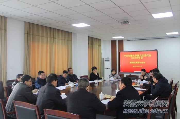 本网讯(新闻中心徐升)根据党代会2017年年会的安排,12月21日、22日,各代表团讨论审议《党委工作报告》和《中共安徽大学纪律检查委员会向学校第八次党代会2017年年会的工作报告》、《中共安徽大学委员会关于深入贯彻落实党的十九大精神 奋力推进学校“双一流”建设 扎实服务现代化五大发展美好安徽建设的意见》和《中共安徽大学委员会关于2017年度党费收缴、使用和管理情况的报告》。