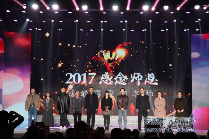晚会上为“安徽大学2017年‘感念师恩’十大最受欢迎老师”颁奖