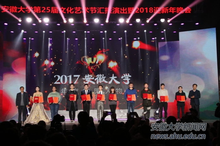 晚会上为“安徽大学2017年十大校园人物”颁奖