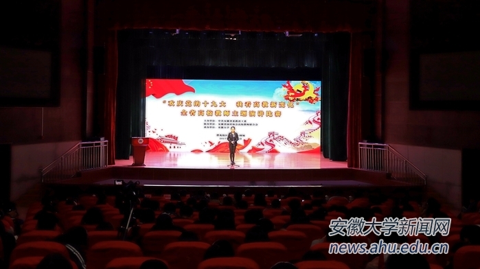 本网讯(新闻中心 赵静福 孙雨晴)12月29日上午,由中共安徽省委教育工委主办,安徽省演讲协会高校教师联合会协办,安徽大学承办的“欢庆党的十九大 我看高教新变化”全省高校教师主题演讲比赛决赛在磬苑校区艺术楼小剧场举办。