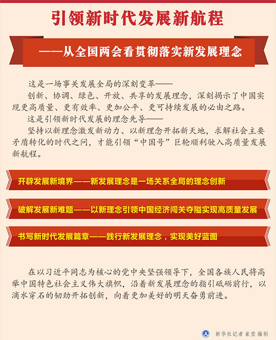 在以习近平同志为核心的党中央坚强领导下,全国各族人民将高举中国特色社会主义伟大旗帜,沿着新发展理念的指引砥砺前行,以滴水穿石的韧劲开拓创新,向着更加美好的明天奋勇前进。(参与采写:于瑶、岳德亮、马剑、孟含琪、胡璐、张紫赟、邬慧颖)