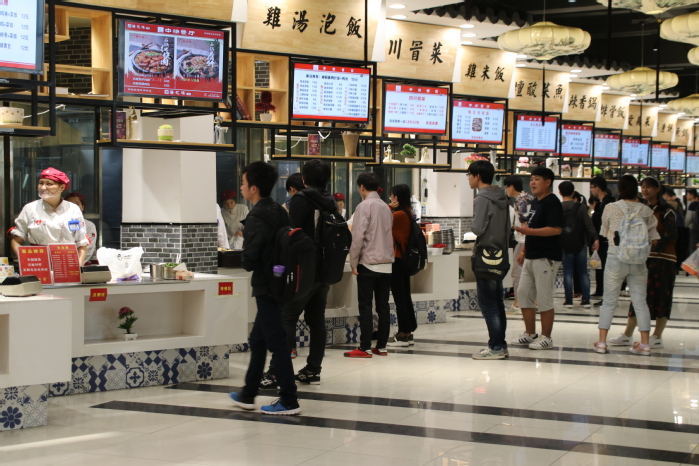 有人曾说食堂是一个学校的灵魂,最近,学校里的部分食堂也发生了些许改变。桂园、梅园等食堂对窗口菜品和装潢进行了微调。其中,桂园食堂二楼部分窗口变化较大,从右到左依次为荤菜窗口和素菜窗口,最左边为结账窗口。现在,同学们再也不用摩肩接踵地排队,而是井然有序地依次购买,避免了拥挤也节省了时间。