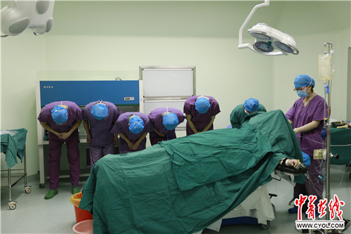 医务人员向器官捐献者徐亮(化名)鞠躬致敬
