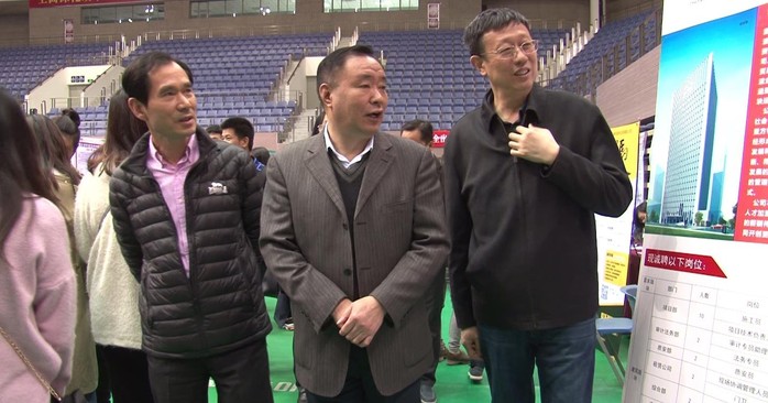 胡小松、袁江林等在双选会现场看望用人单位招聘负责人和应聘学生