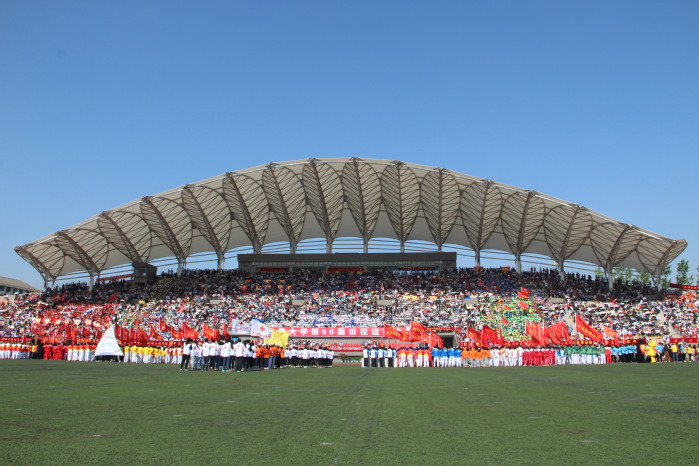 在国旗方阵的指引下,伴随着激昂欢快的旋律,裁判员、运动员方阵踏着整齐铿锵的步伐,精神抖擞地从主席台前方走过,他们神采奕奕,尽展青春与活力。