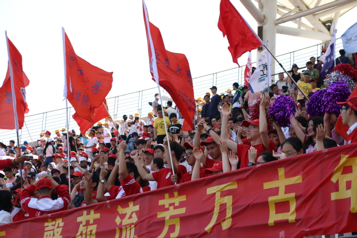 回头看看身后,那不绝于耳、气势磅礴的助威呐喊之声正来源于看台上一张张紧张而激动的脸。为朋友、为荣誉,他们别出心裁,准备良多。造型创意无限、变化多端,大面响鼓在激动时刻捶捶惊心,拼尽全力的呐喊之后,口感舌燥的他们全体起立,向运动员报以热烈的掌声。新闻传播学院的邓希希说:“虽然很晒很热,但是看到大家都热情高涨,我感到很温暖。”17级的赵璇说,自己最大的感受就是在运动会期间感受到前所未有的凝聚力。