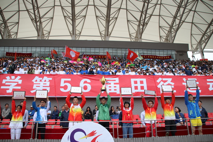 本网讯(新闻中心 刘琪琪 姚家宁)4月21日下午,安徽大学第56届田径运动会结束全部赛程,圆满落幕。副校长虞宝桃致闭幕词并宣布运动会闭幕,副校长薛照明主持闭幕式。第56届运动会组委会成员在主席台就坐。