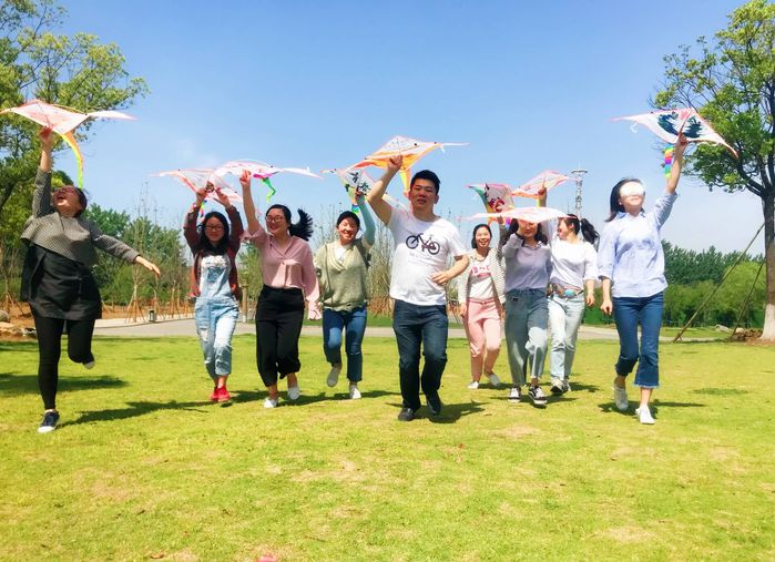 青年志愿者们首先绘制风筝,青春誓言、美好河山等图案在志愿者的手中瞬间变成美好梦想,放飞空中。只见数十个承载着理想的风筝在美丽的翡翠湖畔湛蓝的天空中越飞越高,象征着青年们五彩斑斓的梦想也在充满无限可能的未来越走越远。蓝天下风筝飘舞,草坪上欢声阵阵,小小的风筝传递着青年志愿者对五四精神的传承、对学习生活的乐观以及对梦想的执着追求。