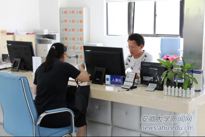人事处窗口正在为老师办理业务