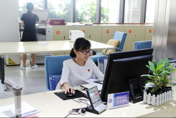 国际合作与交流处窗口杨子莹老师正在审核因公出国材料