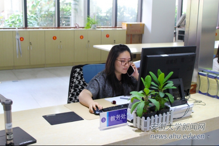 教务处窗口黄煜老师正在接受电话咨询