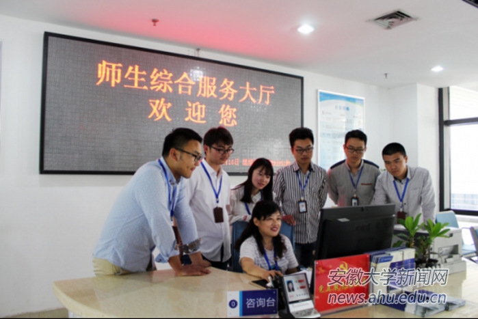 师生综合服务大厅开启一天的工作