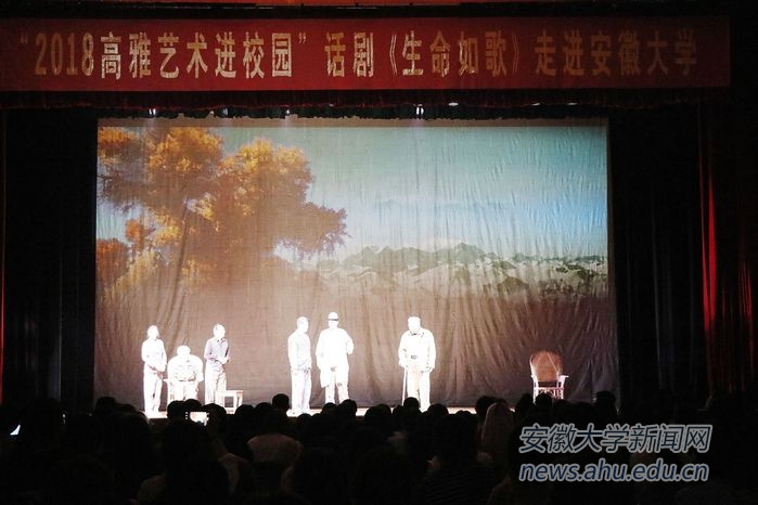 本网讯(师睿智 谢思怡)“2018年高雅艺术进校园”活动日前在磬苑校区大学生活动中心多功能厅举办,山西省话剧院为我校师生带来《生命如歌》话剧表演。校党委副书记、纪委书记胡小松会见了山西省话剧院副院长曹若瑜一行,并与师生一起观看了演出。本次活动由校团委、校青年艺术中心协办。