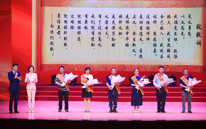 整场活动以弘扬劳动者正能量,展现道德模范与身边好人的风采和精神面貌为主线,通过事迹短片、情景讲述、歌舞小品等多种艺术形式,再现了道德模范与身边好人助人为乐、见义勇为、诚实守信、敬业奉献、孝老爱亲的先进事迹和感人故事。“大爱母亲”肖霞、“板车女孩”黄凤、“最美教师”李元芳等纷纷上台,接受青年学子的献花,接收新时代青年们真诚的敬意。现场,第六届全国诚实守信道德模范提名奖获得者、中国“旗袍先生”崔万志分享了自己的18年来的创业经历,激励学子面对困难,坚守本心,以诚信立身,成就生命奇迹,引发阵阵掌声。