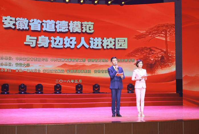 中安在线、安徽文明网、中安新闻客户端讯 传承中华优秀传统文化,弘扬时代文明新风。5月31日下午,“安徽省道德模范与身边好人进校园”活动在安徽大学艺术楼剧场举行,道德模范和身边好人代表齐聚一堂,为安大学子上了一堂生动的“德育课”。