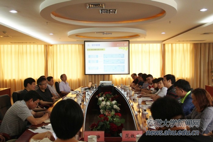 安徽大学后勤管理处处长郭子哨围绕学校的历史概况、学校后勤社会化改革、物业管理及绿色大学建设等方面进行了汇报。与会双方进行了交流讨论,表示希望能在学校后勤方面进行更加深入的互动学习。