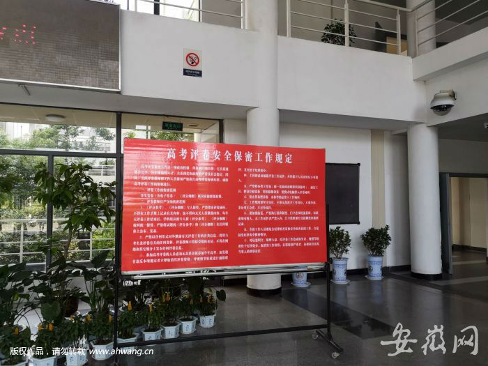 今日上午8时,记者走进安徽大学磬苑校区阅卷现场,大厅内《高考评卷安全保密工作规定》赫然醒目,现场安保严格,庄严肃穆。(新安晚报 安徽网 大皖客户端记者 钟虹 摄影报道)