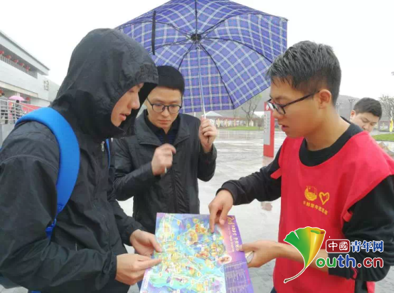 安徽大学第十九届研支团成员刘运鹏在丰都庙会中为游客服务。安徽大学研支团 供图
