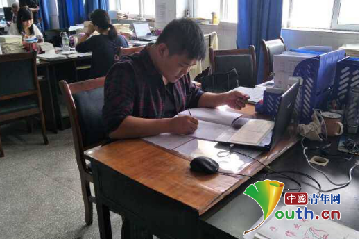 服务于重庆市丰都县的安徽大学第十九届研支团成员蔡洪忠在认真备课。安徽大学研支团 供图