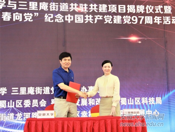 校党委常委、副校长虞宝桃,蜀山区委副书记杨森、副区长李萍,三里庵街道党工委书记、办事处主任韩艳,学校有关部门院系负责同志出席。