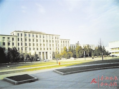 “老安大的标志性建筑,由前苏联专家帮助建造的七层教学大楼如今并不显得高大。楼后的荒地开辟成广场,南门和隔壁科大一路之隔。在修葺齐整的花草树木怀抱中教学主楼依旧端庄美丽,低调从容……”